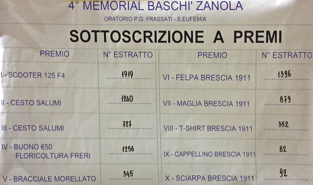 IV Memorial Baschì – Zanola: i numeri vincenti della sottoscrizione a premi