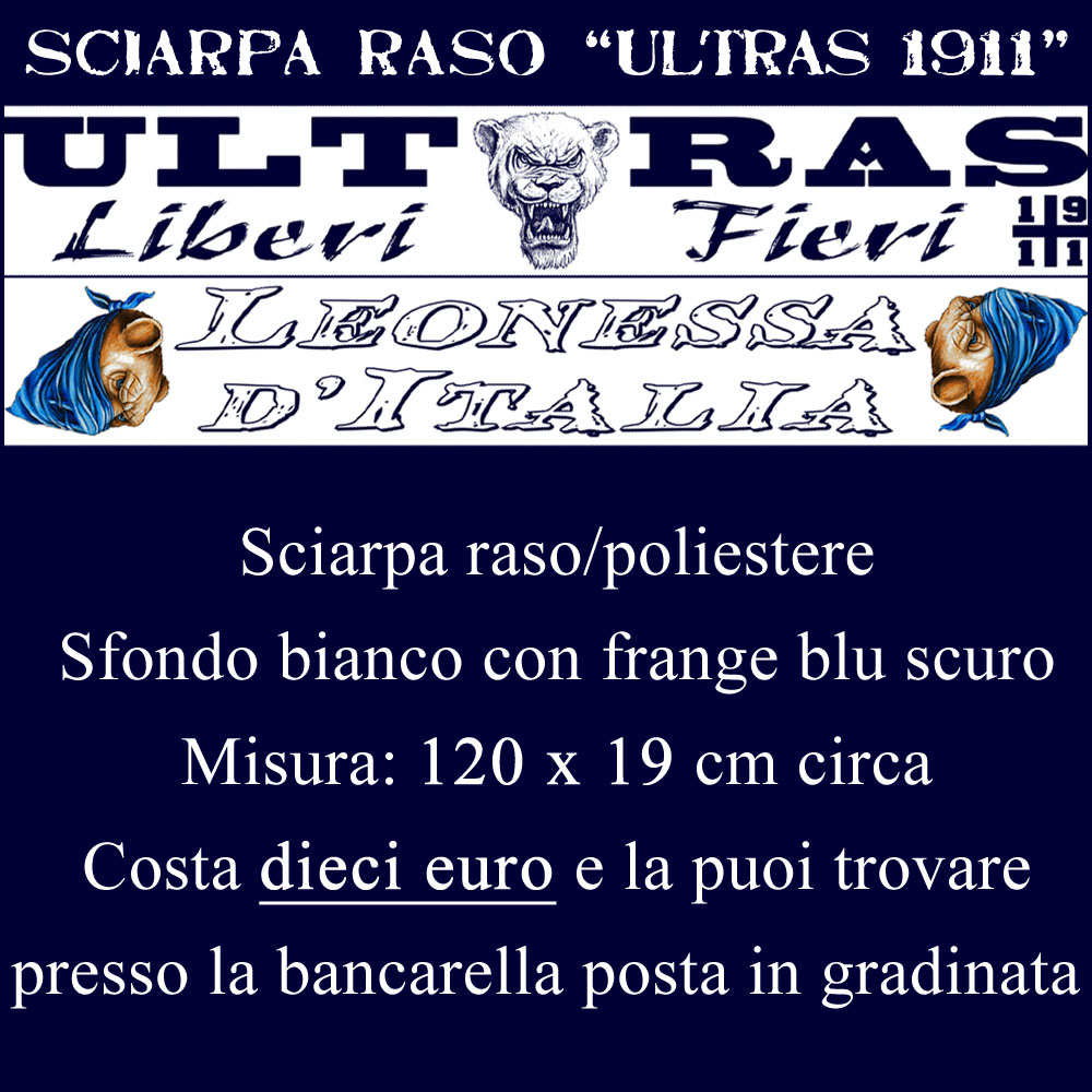 30/03/2017 | Categorie: News | Tags: 1911, Bancarella, brescia 1911, Fieri, Leonessa d'Italia, Liberi, Materiale, Millenovecentoundici, poliestere, Sciarpa, Sciarpa raso, Stampa, stampa fronte retro, Testa Leonesse, ultras | Lascia un commento