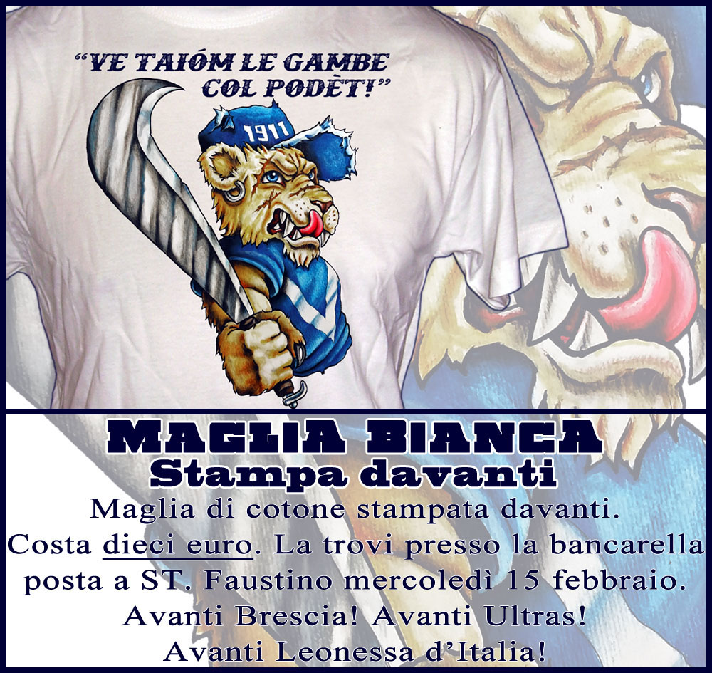 Costa dieci euro e la puoi trovare -fino ad esaurimento- presso la bancarella posta a ST. Faustino -mercoledì 15 febbraio; oppure, in caso di rimanenza, la puoi trovare presso la bancarella posta in gradinata prima della partita: “Brescia vs Cittadella ” di venerdì 24 febbraio