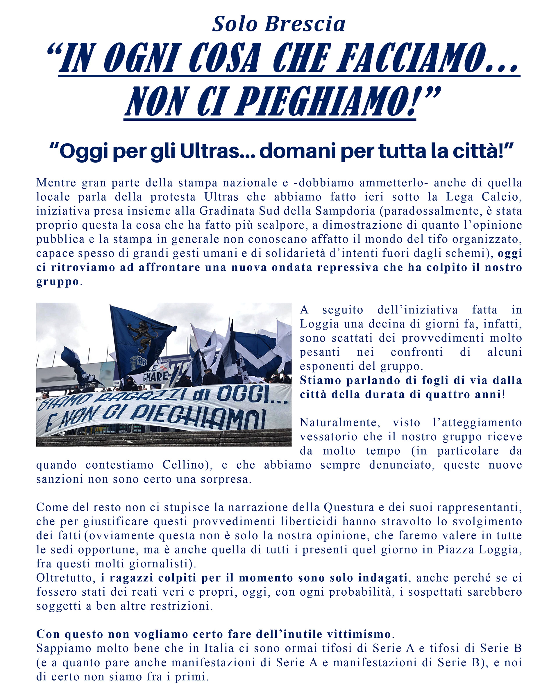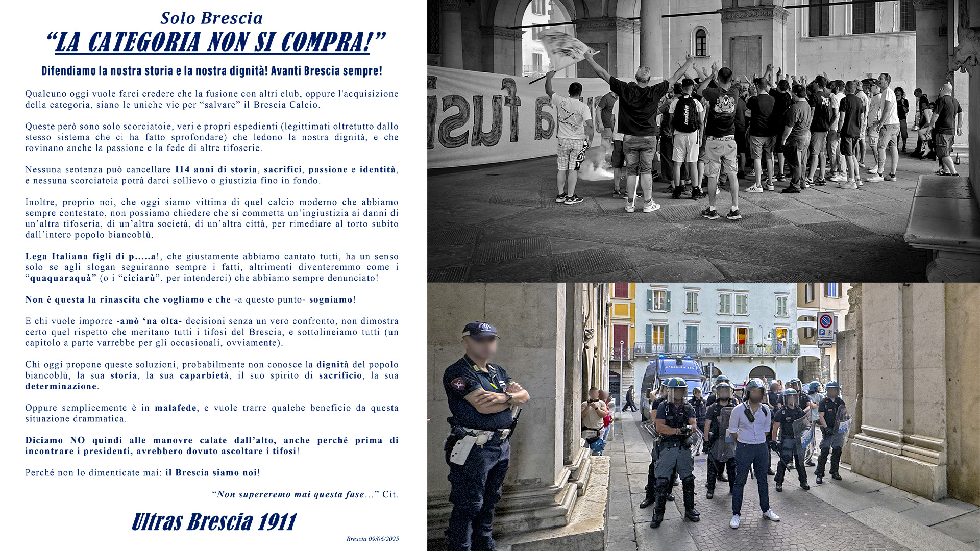 Brescia 1911 vs Milan: “Chiedimi se sono felice…” – Il volantino che (non) sarร distribuito stasera